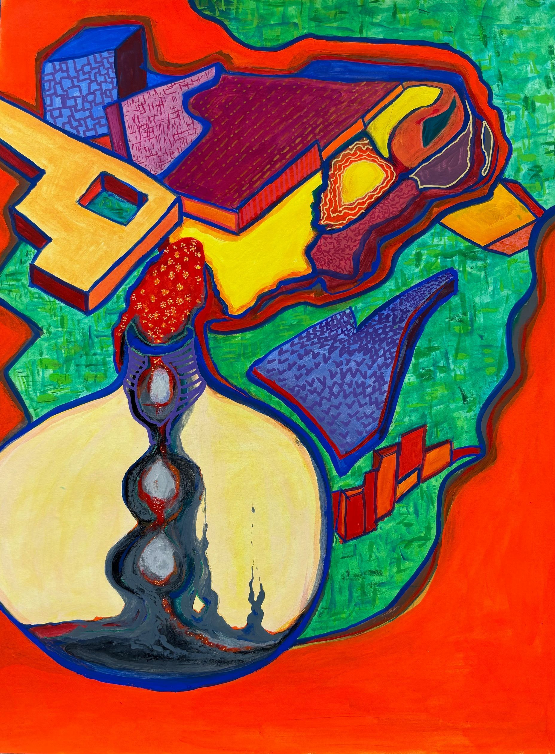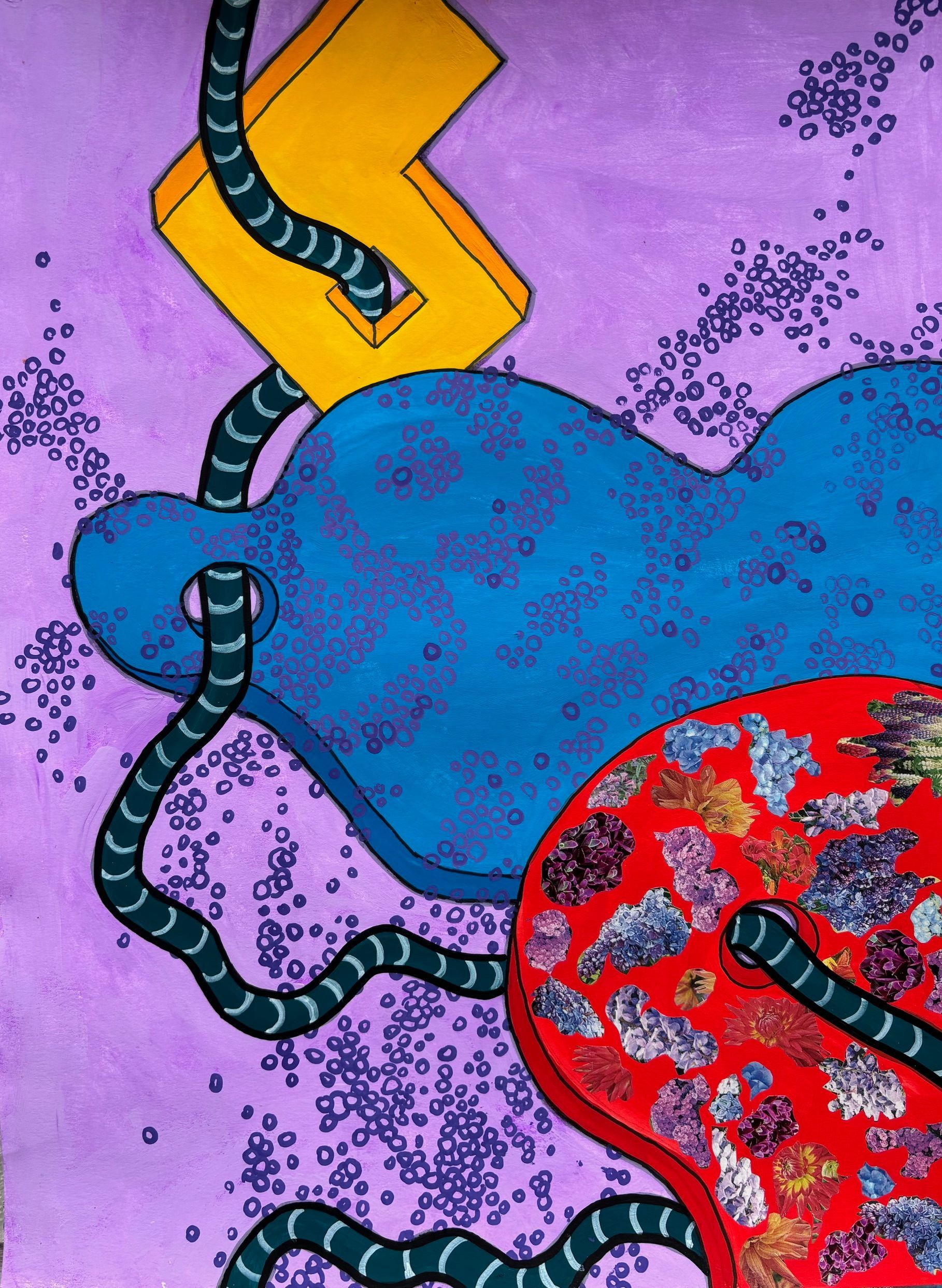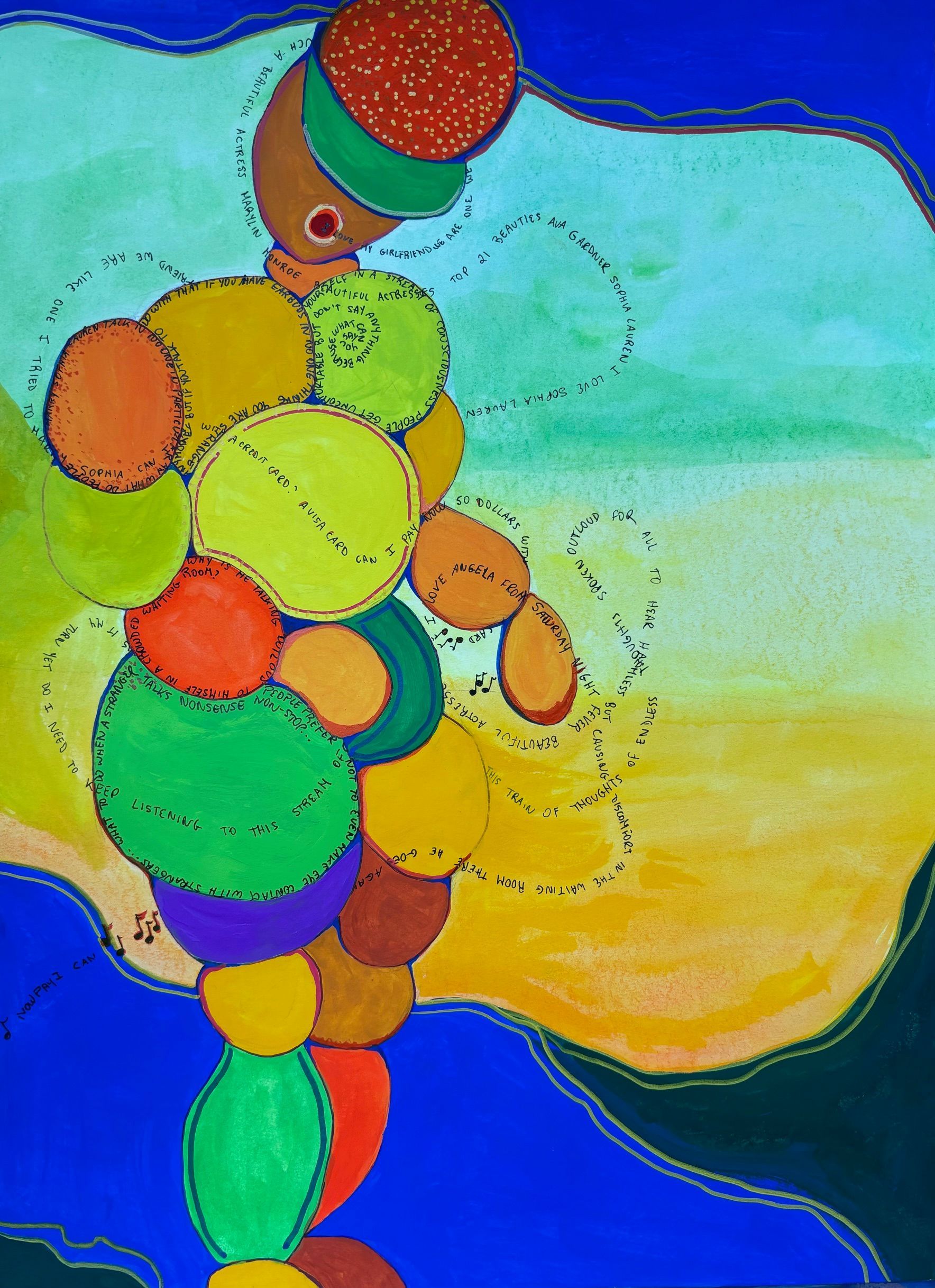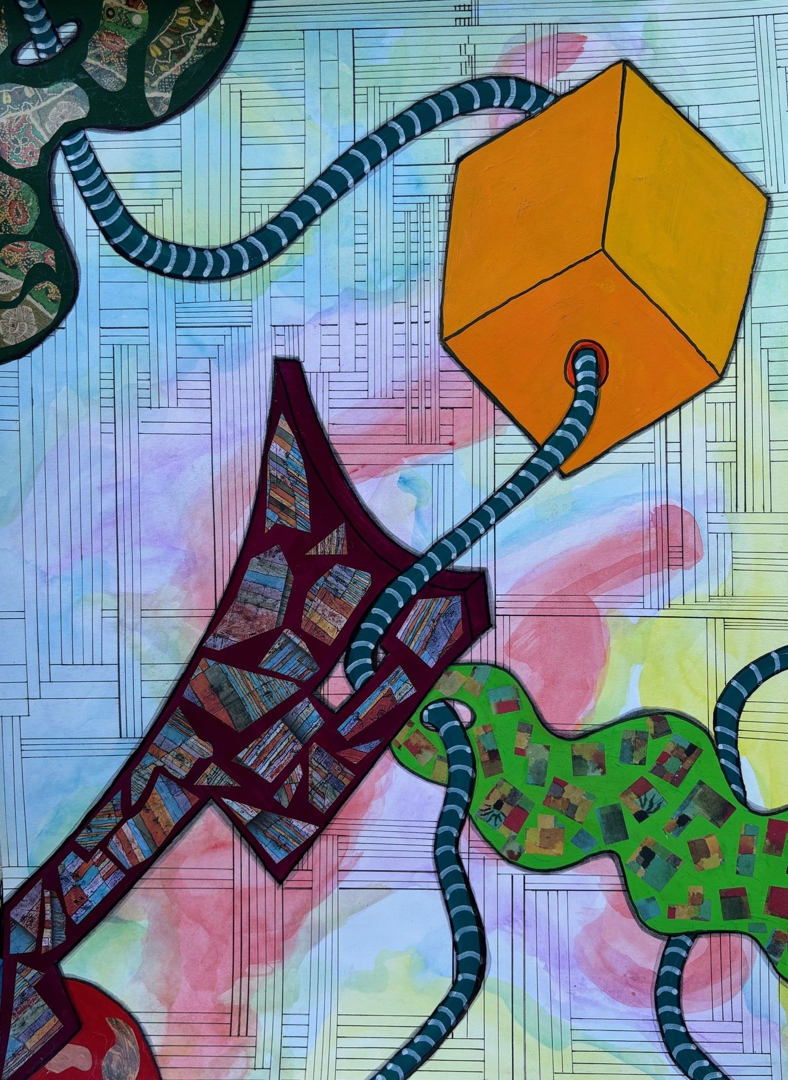 There are so many ways to visually express this idea, it has been fun playing around with the concept. We all have a lot of thoughts about little things and even more about complex, thorny issues. It's worth taking a moment to gather our thoughts before we put them out there. In this series, I aimed to express this idea visually. These pieces use gouache, pen, collage, and pastel, on paper.