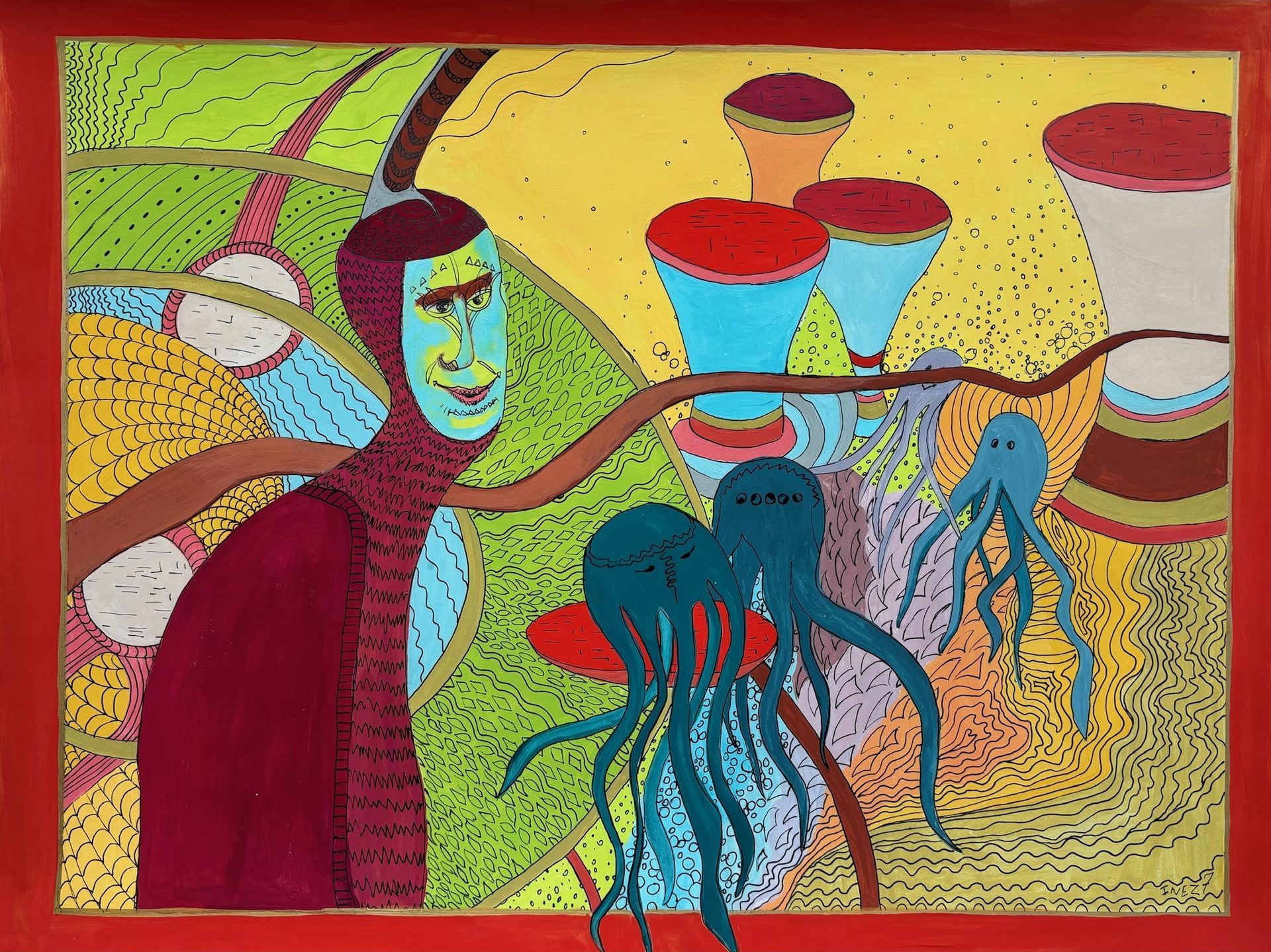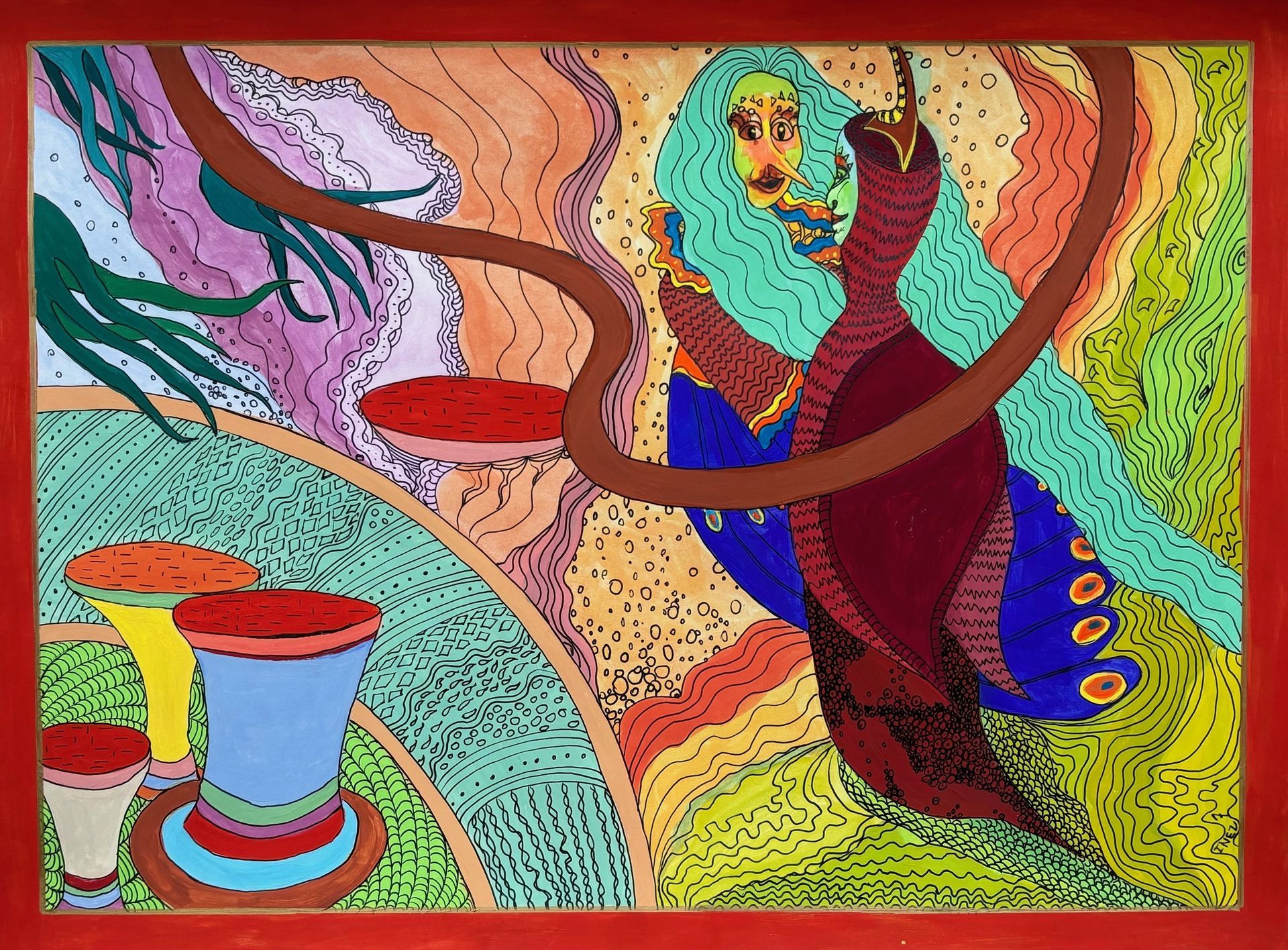"Tootling along with my pet tentacled creatures, we got thirsty after playing ring-around-the-spools, toss a-ring-ding, and swishing darts, so we floated over to the watering drinkery. And who happens to be floating by, but none other than Assana, she of the waterfall. She seems distracted, rapidly moving my way. I wonder what has her spooked?"